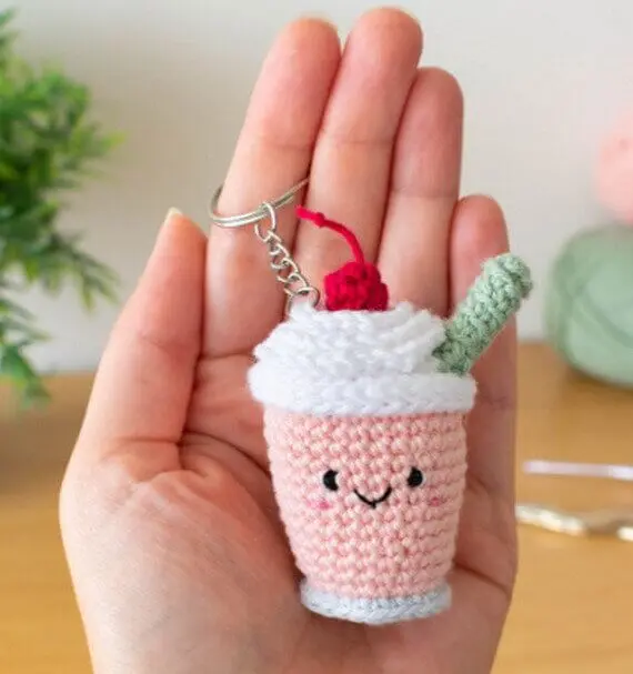 Brighten your day with the irresistibly cute Strawberry Milkshake Amigurumi Keychain! This free crochet pattern is perfect for adding a touch of sweetness to your keys, bags, or even as a fun gift for a friend. Featuring a cheerful pink “milkshake” topped with whipped cream and a darling red cherry. The pattern makes it an ideal choice for anyone looking to practice their amigurumi skills or use