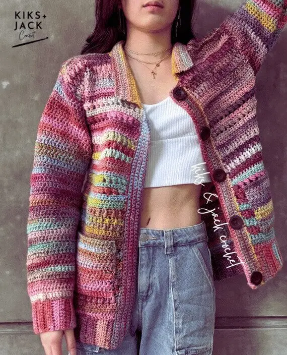 The My Boyfriend Cardigan Free Crochet Pattern is the perfect blend of comfort and style. With its classic design and basic shapes, this sweater is not only a staple in every wardrobe, but also a great project for beginner crocheters. The easy stitches used in the pattern make it a simple and enjoyable project to work on. The addition of pockets in the front adds both practicality and character