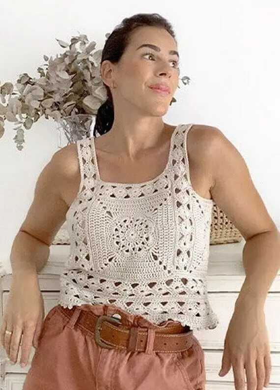 This Nazari Top Free Crochet Pattern includes a set of four granny squares and decorative border pieces that all come together to create a stunning top that is perfect for any occasion. The pattern includes detailed video tutorials to guide you through the process, making it suitable for beginners and experienced crocheters alike. With its intricate design and unique construction, the summer crop